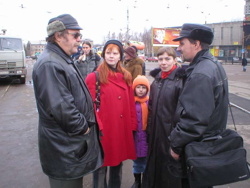 ![]() Святослав и Ольга Логиновы, а также Вадим Казаков и его семейство перед гостиницей "ДИС". |