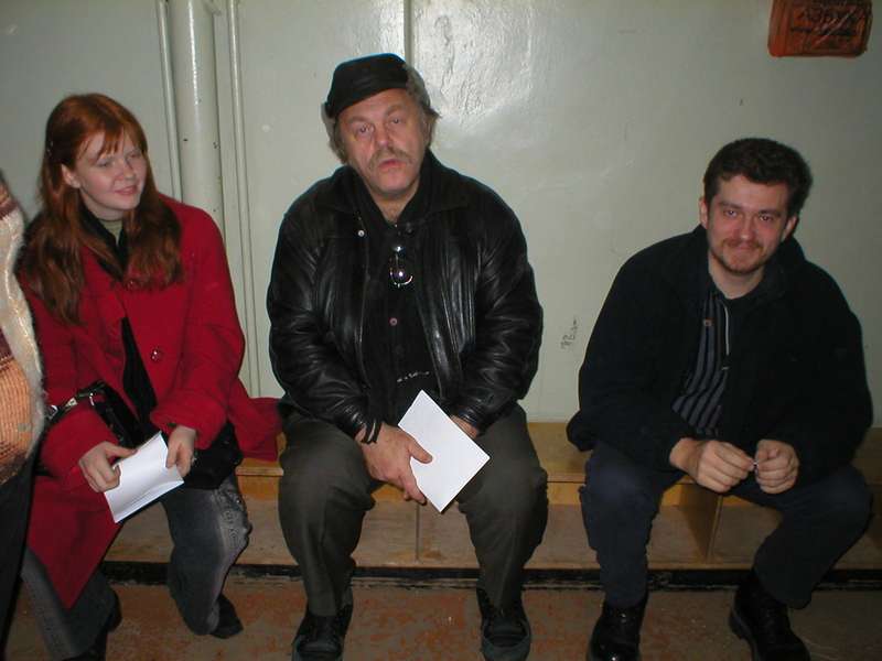 ![]() Святослав и Ольга Логиновы, а также Дмитрий Скирюк в ожидании аккредитации (грустная песня а ля рюс). |