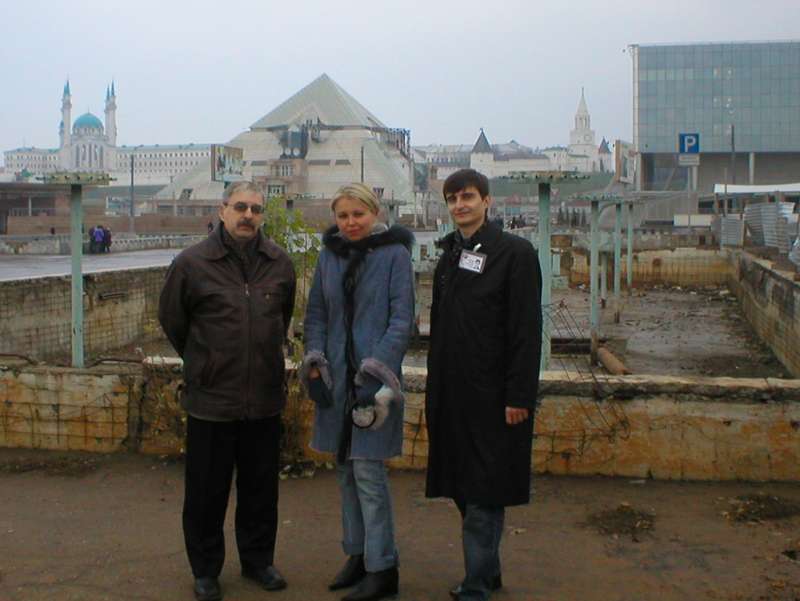 ![]() Е. Филенко и А. Зорич на фоне казанских предъюбилейных новоделов. |