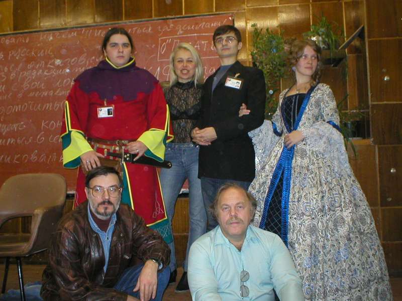 ![]() Письменник А. Зорич, Кирилл Еськов и Святослав Логинов в обрамлении красивых ролевиков. |